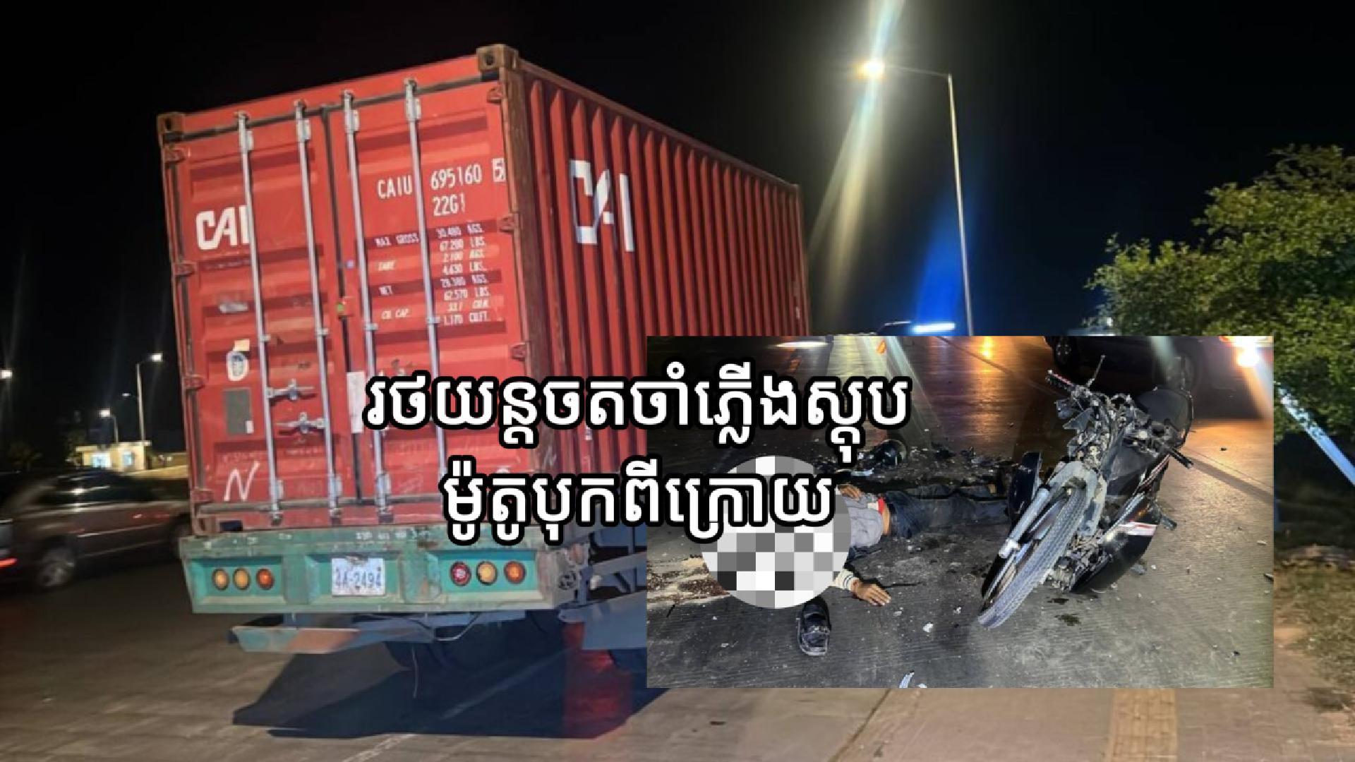 គ្រោះថ្នាក់ចរាចរណ៍រវាងម៉ូតូនិងរថយន្តធំសណ្តោងទូកុងតឺន័របណ្តាលឲ្យអ្នកបើកបរម៉ូតូស្លាប់នៅនឹងកន្លែង